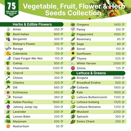 • Sourced in the USA – Our garden seeds are carefully sourced from trusted U.S. farmers, ensuring sustainability and quality for growing healthy, pesticide-free produce. Expertly sealed for long-term storage, they remain fresh and viable for up to 3 years, giving you peace of mind and exceptional results in every planting season.