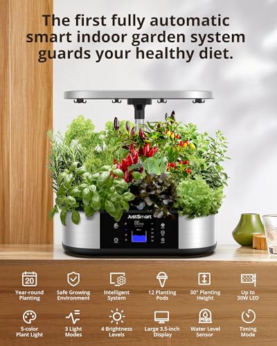 Aoile Hydroponics Growing System, 12 Pods WiFi Indoor Garden Kit with LED Grow Light, Auto Timer, 3 Planting Modes, Adjustable Height Up to 30", 30W LED Light, Herb Garden Planter Indoor for Christmas