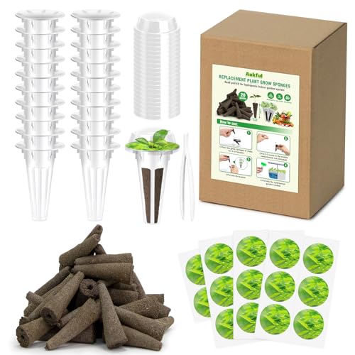 Aukful 81 PCS Grow pod Kits with 20 Grow Sponges, 20 Grow Baskets, 20 Grow Domes, 20 Pod Labels and 1 Tweezers,Supplemental Grow Sponge Compatible with Most Brands of hydroponic Indoor Garden Systems