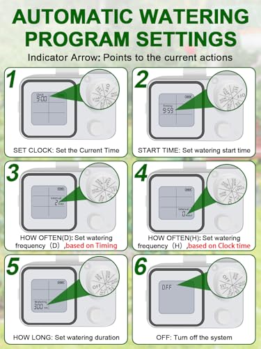 - ?Customizable Watering Schedules?This automatic plant waterer indoor features an adjustable timer, making it easy to control water flow for tailored plant care. The controller allows you to set watering durations (0-300 seconds) and intervals (1-30 days or 1-15 hours), ensuring your plants are watered precisely when needed. Whether you're home or away, the system reliably delivers the right amount of water at the right time, keeping your plants healthy and thriving