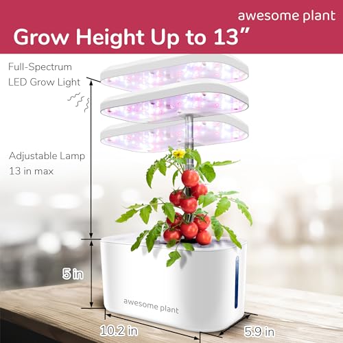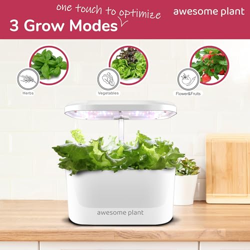 Awesome Plant 6Pro Hydroponics Growing System Kit (6 Pods), Indoor Garden Kit with 3L Watertank, 3 Grow Modes and Quiet Pump, Grow Herbs Lettuce Salad at Home Kit, Adjustable Height Up to 13", White