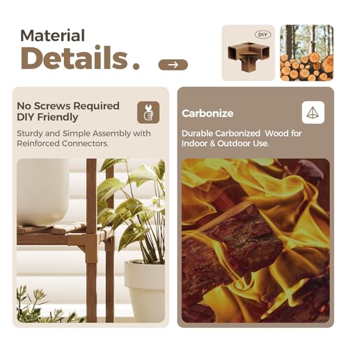 - Premium & Durable Wood: Our Wooden Plant Stand is crafted from premium wood, carbonized at 572?F for unmatched water and heat resistance. This process not only extends its lifespan but also ensures it remains a healthy choice, eliminating the need for extra paint or varnish