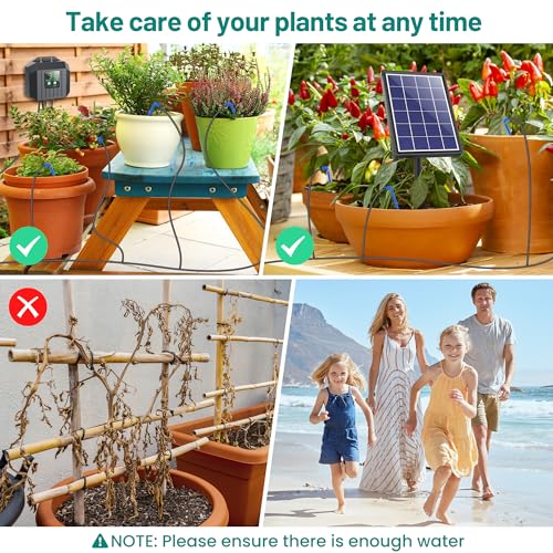 • Easy Installation: Designed for hassle-free setup, the system features separate solar panel and controller units that can be positioned optimally. The included 15m tubing reaches multiple planting areas, while the waterproof controller can be placed anywhere convenient