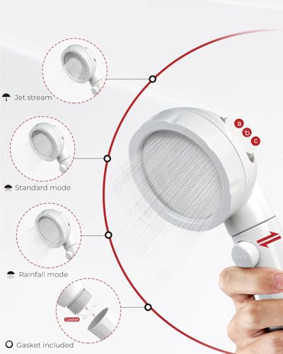- Easy to Install– includes 1 quick connector adapter, removable shower head fits G 1/2" standard shower arm or pipe, requires no plumber and no tools.