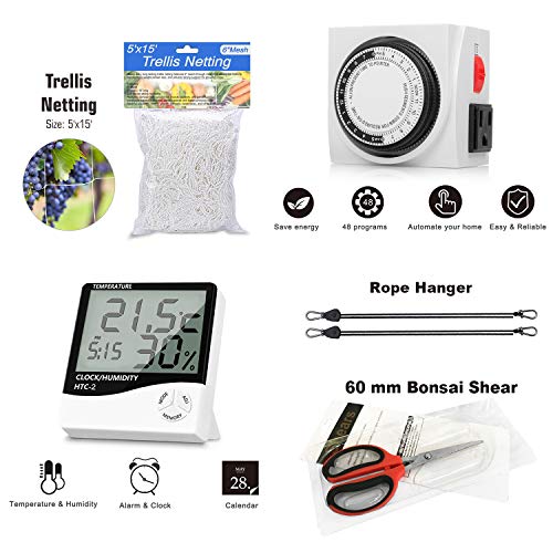 CDMALL 2×2 Grow Tent, 24''x24''x48'' Indoor Plants Growing Dark Room with Accessories Complete Kit Hydroponic Growing System with Hangers, Trellis Netting, Shear, Timer, Humidity Monitor