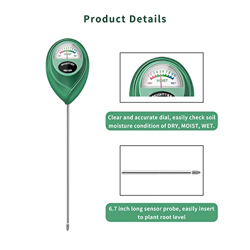 • ?SAVE YOUR PLANTS?: Over watering can cause problems with your plants or even kill them. This soil moisture meter helps you know the soil is dry, moist or wet.No more over watering!