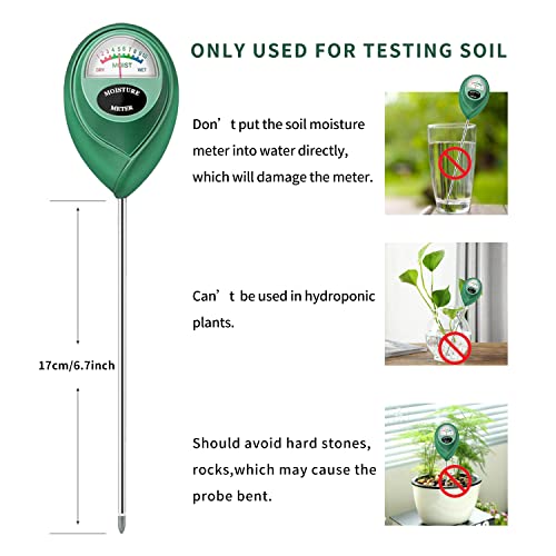 • ?GREAT SIZE & PORTABLE?: This soil meter is a great handy tool for home gardeners, plant lovers, beginners. Do not leave the soil moisture meter in the soil for long time or directly soak it into a cup of water that will ruin the device.