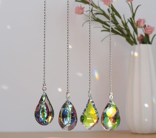 Crapyt Crystal Pendant Suncatcher Hanging Prism Glass Colorful Drops Chandelier Light Fan Window Door Wall Wind Chime Parts Pull Chain Decorative 4 PCS with Chain(50cm) DIY Replacement Diamond