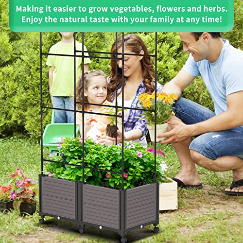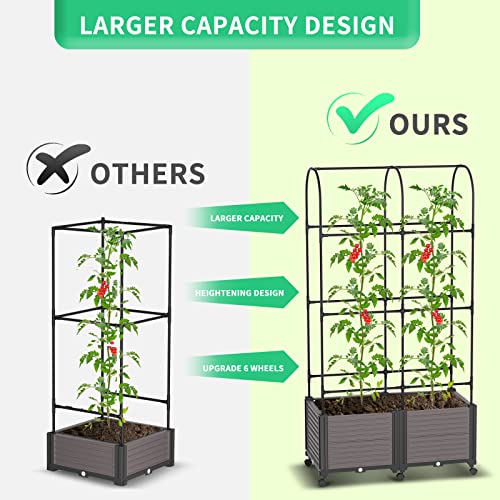 DoCred Raised Garden Bed Planter Box with Trellis for Climbing Vegetables Plants, Tomatoes Planters Outdoor Tomato Cage with Wheels, Indoor Outdoor Use