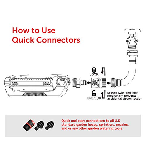 - 18 precision nozzles provide maximum coverage of large lawns and gardens .Quick Connect Starter Set for quick connection and disconnection fits standard U.S. garden hoses and watering tools. The secure twist-and-lock mechanism prevents accidental disconnection and water stop feature allows tool changes with the water on.Used for Garden & Lawn
