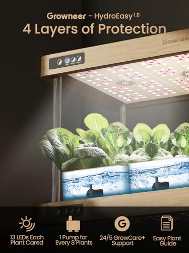 GROWNEER HydroEasy1.0 Hydroponics Growing System Kit, Beginner-Friendly Indoor Garden for Vegetable Fruit Herb, Solid Wood Design, Perfect Gift Idea, Full-Spectrum LED Lights for Maximum Growth