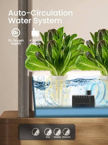 - DUAL-LAYER 4-ZONE INDEPENDENT CIRCULATION DESIGN – The system features four water tanks and smart, silent pumps that enable automatic water circulation, boosting oxygen levels and ensuring even nutrient distribution to plant roots. Independent zones provide tailored water and nutrient supplies for each area, meeting diverse plant needs while enhancing system efficiency and yield. Includes 32 x plant baskets, 32 x sponges, 32 x plastic grow domes, 1 x waterproof power supply, and 1 x nutrient A&B