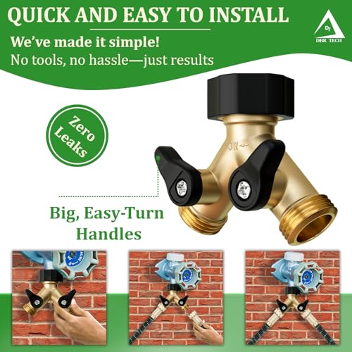 - Heavy-Duty Brass Construction – Our garden hose Y splitter is made with a high-quality brass that is rust and corrosion resistant and secures to your outdoor faucet with improved strength and resilience to reduce leaks.