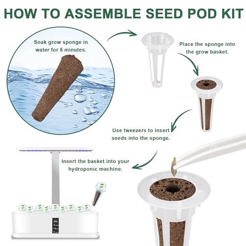- Affordable 8pod Kit: Hydroponic pod kit with 6 kinds of herb seeds(Over 200 seeds), 8 grow sponges, 8 grow baskets, 8 pod labels, 8 grow domes, 1 A&B plant food and 1 tweezer, supply all needed for your indoor gardening system