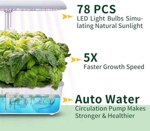 - [HYDROPONIC SYSTEM]: Start an indoor garden with the hydroponic growing system, which includes a water reservoir, an overhead LED grow light, and a circulation system that keeps the water fresh. Our indoor gardening system also ensures you never forget to water your plants again, making growing healthy and vibrant plants easier than ever before.