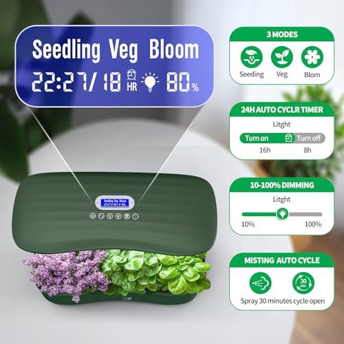 - NEARLY SILENT PUMP WITH WINTER OPTIMIZATION: The system can adjust the water temperature by approximately 35-39?F, improving seed germination rates by 50%, allowing you to enjoy the joy of planting even in winter. The quiet misting system operates with a 30-minute on and 30-minute off cycle, so you can admire your plants' progress from any corner of your home.