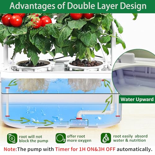 - ?Grow Strong, Fast and Smart? The eSuperegrow Smart Hydroponic Gardening System utilizes professional design for strong growth and superior harvest. Double-layer structure with a built-in water pump design for increased water circulation and more oxygen to improve plant growth. Includes customized high-efficiency grow light with 60-degree lens for more concentrated and efficient light–the plants grow faster and better.