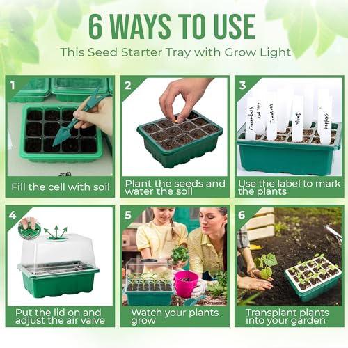 - ?EVERYTHING YOU NEED: Our product includes 5 sets of trays for efficient seedling growth, 5 valves equipped with LED lights to support plant development, a timer cable for convenient lighting control, a set of tools for easy handling, a pair of gloves for protection, and detailed instructions to guide you through the setup process.