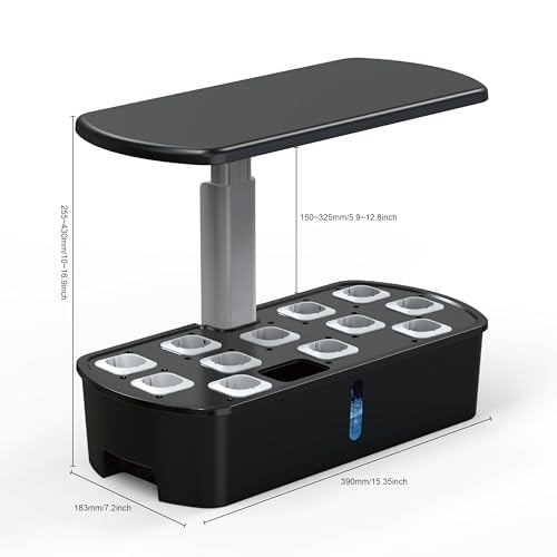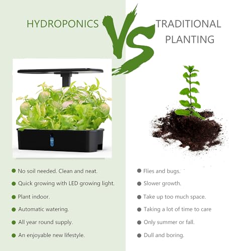 Indoor Hydroponics Growing System Kit,BHTNYOO 12 Pods Hydroponic Planting Herbs Garden with Smart LED Grow Lights,Pump Timer,Height Adjustable(Black)