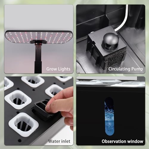 - ? Silent water circulation system: The hydroponic garden uses advanced deep-flow technology. The water tank is equipped with silent water pumps, which run every 30 minutes to provide oxygen,content in the water and sufficient oxygen for plant roots, making the plants grow faster and healthier