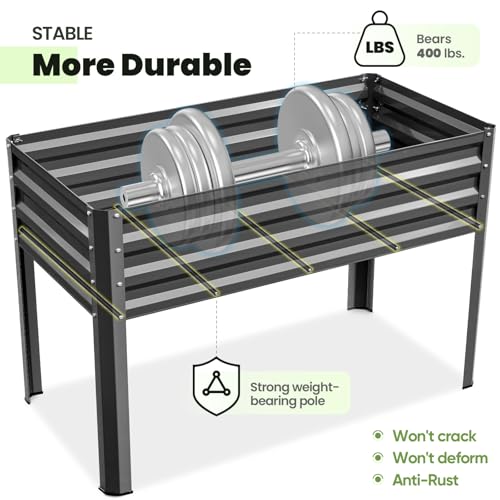 - ?Sturdy & Durable, Capacity: 400 lbs?Our galvanized steel planter raised bed is rust-resistant, sturdy, and can support up to 400 lbs. More durable than wooden raised garden bed kit, it ensures a longer lifespan without the worry of cracking or warping.