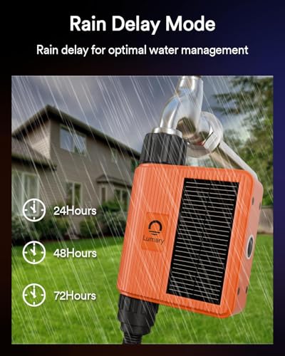 - Rain Delay and Irrigation Records: Lumary Solar Sprinkler Timer includes a convenient rain delay feature and the ability to view irrigation records. Preventing unnecessary water use and protecting your garden from overwatering