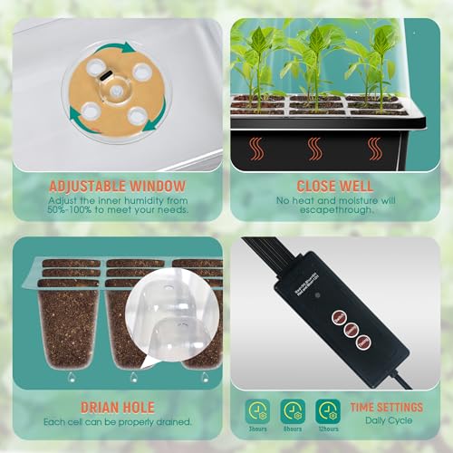 - ??Unique Design?-Adjustable window let you can adjust the inner humidity from 50%-100% to meet your needs. Transparent seed stray lets you keep an eye on the growth. Drain holes at bottom for better drainage. So you have total control over the growing process.