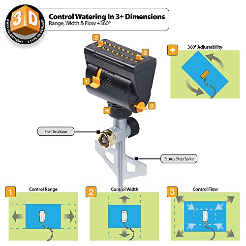 - Flo-thru base allows unit-to-unit connection so multiple sprinklers can be set up throughout the yard