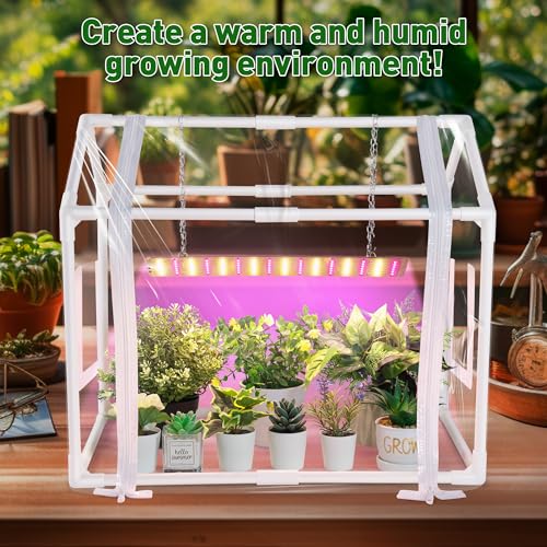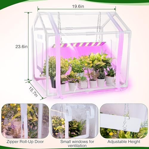- ?Mini Greenhouse with Grow Light: Mini greenhouse size is 23.6 in x 15.7 in x 19.6 in, providing plants with comfortable growing space; Helps maintain plant temperature and humidity, creating a warm and humid growing environment