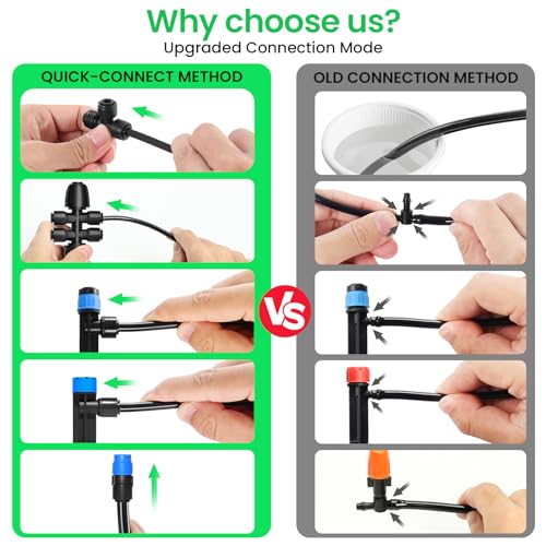 - ?Innovative Quick Connector Technology:Featuring a new quick connector design, our plug-and-play irrigation tube ensures a secure fit, preventing leaks and making installation a breeze.Takes only 10 minutes from setup to full operation, saving you time and effort.