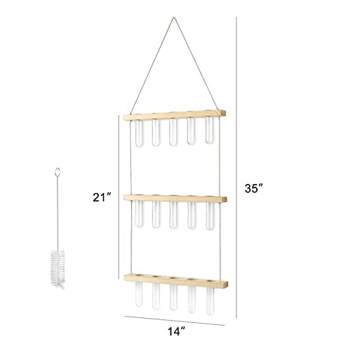 - Size: Wooden holder: 14.2'' L X 1.8'' W X 0.6'' H; the height between the two wooden holder is 9.7'', total height is 35'', Test tube: diameter is 1'', height is 4.3''. The test tube glass planter can be easily removed to change water or clean. Note: No plants or props included in this item!