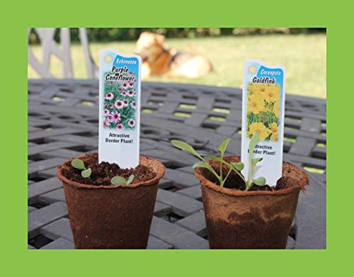 - COMPLETE SEED STARTER KIT comes with 6 flower seed packets containing 25-50 KID-FRIENDLY sized seeds for Swamp Milkweed, Lance Leaf Coreopsis, Sulphur Cosmos, Purple Coneflower, Blanket Flower and Zinnia, 6 biodegradable planting pots, 6 expanding coco coir soil wafers, 6 flower stakes, 6 coasters, a spoon and a growing guide; Everything you need