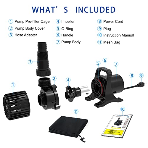 - ? VERSATILE MULTI-USE PUMP: Not only used as waterfall pump and fountain pump to help build an amazing backyard, it can also be applied for irrigation system, hydroponics, water circulation for outdoor ponds such as koi pond, duck pond.
