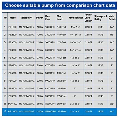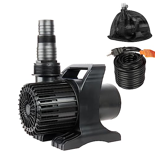 - ?Smarter & Quieter?-EASY INSTALLATION: It is AMPHIBIOUS, not only a larger outdoor 13800gph pond waterfall pump (New upgaraded quieter&powerful pond submersible pumps for outdoor ponds) but also can be used on dry land for more applications. With 32.8 feet SUPER LONG CORD, it can meet a variety of distance requirements. Large 13800gph pond waterfall pump for outdoor ponds comes already assembled. All you need to do is just to place it in the pond water-fall pumps and plug it in, which is so easy