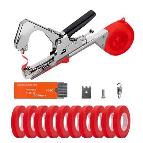 Plant Tying Machine, Garden Tapetool Tapener,Vines Plant Tying Tool for Grapes,Tomatoes,Peppers,Indoor Plant with 10 Rolls of Tape,10000 Staples,1 Replacement Part