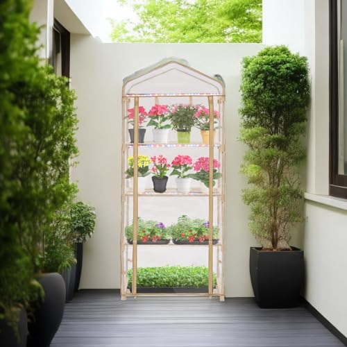 - Small Footprint and Generous Capacity – The garden greenhouse has dimensions of 26.8" L x 19.3" W x 61.8" H, featuring 4 tiers. This size is ideal for accommodating 10" x 20" seed trays, making it perfect for seed germination and displaying plants.