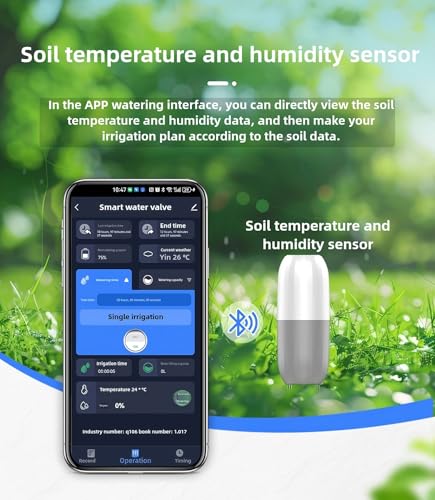 - ?Smart Hose Timer With Soil Sensor?The intelligent watering timer for outdoor plants is combined with soil temperature and humidity data to achieve intelligent and smart automated drip irrigation.When the soil temperature and humidity reach the preset values controlled by app and phone, the garden hose timer will automatically start watering or close watering