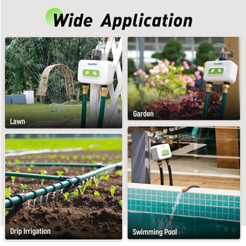 - ?Dual-Zone Tailored Watering Solutions?With two programmable zones, Our Smart Watering Timer lets you create customized watering schedules for different areas of your garden. Whether you have a lawn, flower beds, shrubs, or vegetable garden, you can adjust the settings for each zone independently to ensure optimal moisture levels for healthy plant growth.
