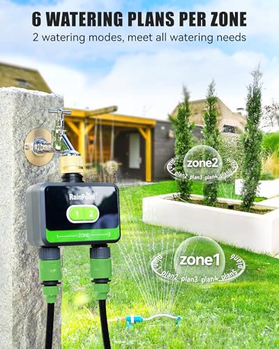 - ?Dual Programmable Zones? Each smart hose timer zone operates independently, allowing for customized watering schedules for each zone. Set up to 6 watering schedules per zone for efficient and intelligent watering.
