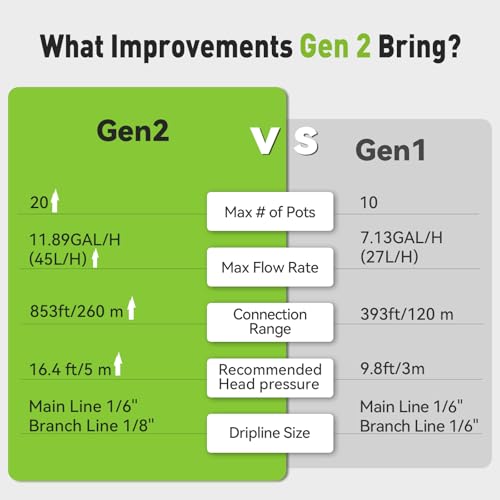 - ??Higher Pumping Output??Our Gen2 WiFi waterer features a premium motor that delivers greater pump head(16.4ft/5m recommend), making it easy to nourish 20 lush plant varieties – from cascading pothos to sun-loving succulents. With it, your indoor garden will become a thriving oasis where you can sip your coffee as new leaves unfurl and time melts into your thriving oasis.