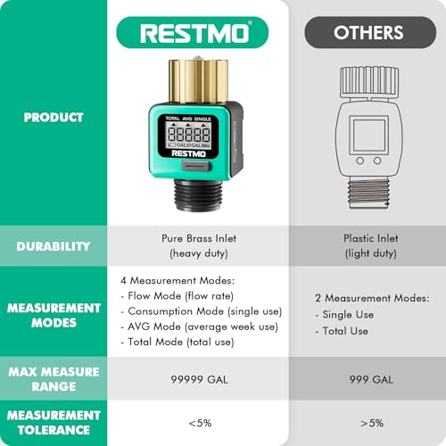 Be the first to review “RESTMO Water Flow Meter with Brass Inlet Metal Thread, Measure Gallon/Liter Consumption and Flow Rate for Outdoor Garden Hose Watering, RV Water Tank Filling, Lawn Sprinkler and Nozzle Sprayer”