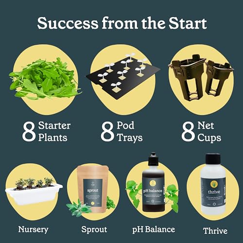 - What’s Included: The Personal Rise Garden has full spectrum LED lights that mimic sunlight and maximize growth. It also includes an 8 Starter Plant Variety Pack, 8-Pod Tray, Nursery, pH Balance, Thrive, and Sprout, everything you need to start.