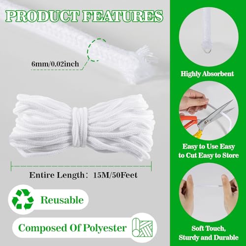 Self Watering Rope – 50 Feet × 1/4 Inch Self Watering Rope for Plants Wicking Cord for Garden Wick Rope for Self-Watering System Capillary Wick for Potting Orchid Tomato Plant