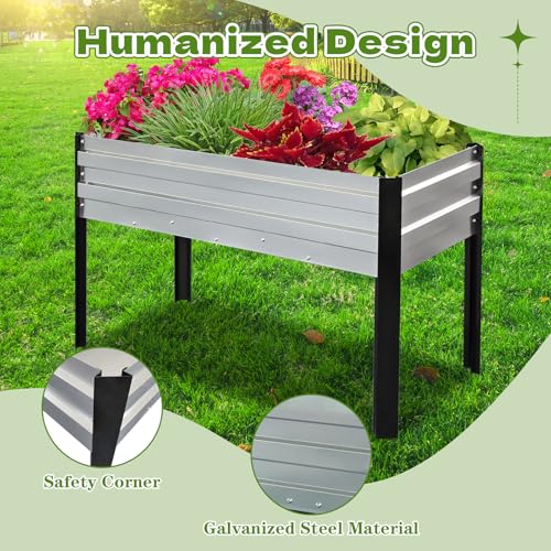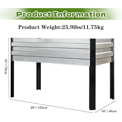 • ?Humanized design?Our metal garden beds with legs stands at a comfortable height of 30 inches,which convenience for your planting, stand-up straight when gardening, protecting your back and knees from excessive strain.