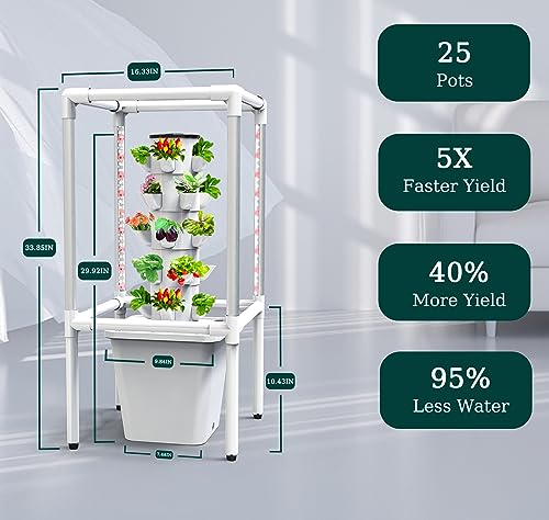 Sjzx Hydroponics Growing System Kit with Grow Lights |25-Plant Hydroponic Tower | Home Indoor Gardening Herbs, Fruits and Vegetables | Indoor Hydroponics Tower System Kit