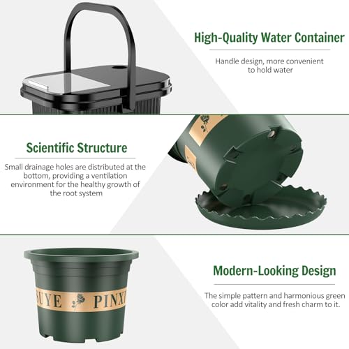 - ?Ample Gardening Planting Kit?Includes solar drip irrigation system and its accessories, 4.5 inches and 6 inches pots 10 pcs, with bottom bracket, and a 3.5 gallon capacity square bucket with handles, you can put your gardening tools inside the bucket, convenient for you to carry and storage tools, open lid design is convenient for you to get the tools inside the bucket