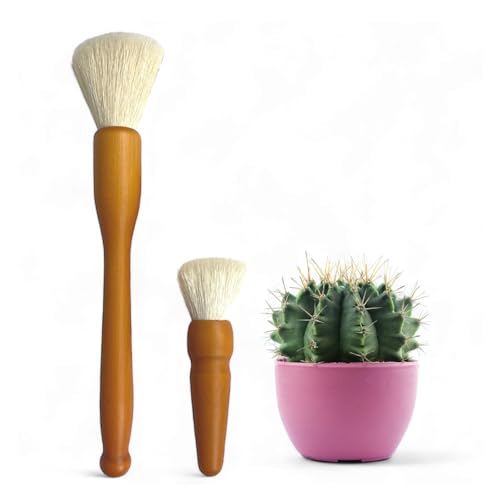 Southside Plant Cactus & Succulent Plants Cleaning Brushes – Wooden Handles w/Soft Goat Hair Bristles – Garden Cleaning Tools, Gentle on Plants, 7" & 3.2" Sizes – Pack of 2