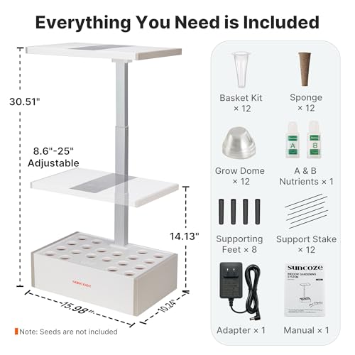 SUNCOZE Hydroponics Growing System Kit 20 Pods, Indoor Herb Garden with Grow Light 30W, 10L Large Water Tank with Adjustable Height to 25", Built-in Pump, Gardening Gifts White