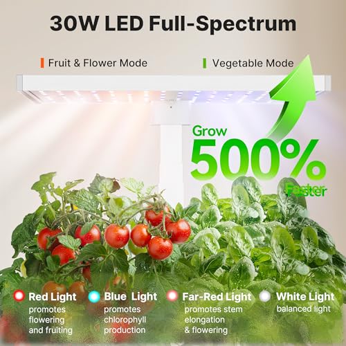 • ?30W Light Panel & 2 Growth Modes?The SUNCOZE herb garden planter indoor kit features an efficient 30W full-spectrum LED grow light that mimics the effects of natural sunlight. It automatically operates on a 24-hour cycle (16 hours on, 8 hours off). Simply select the veggie or flower & fruit mode using the control panel buttons, and watch your plants thrive!
