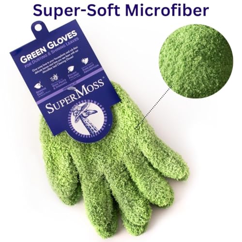 SuperMoss (01710 Microfiber Dusting Gloves for Plants – Gentle Leaf Shine & Cleaner for Houseplants, Reusable Indoor Plant Care Accessories, Durable and Washable Dusting Mitts, Universal Fit, Green